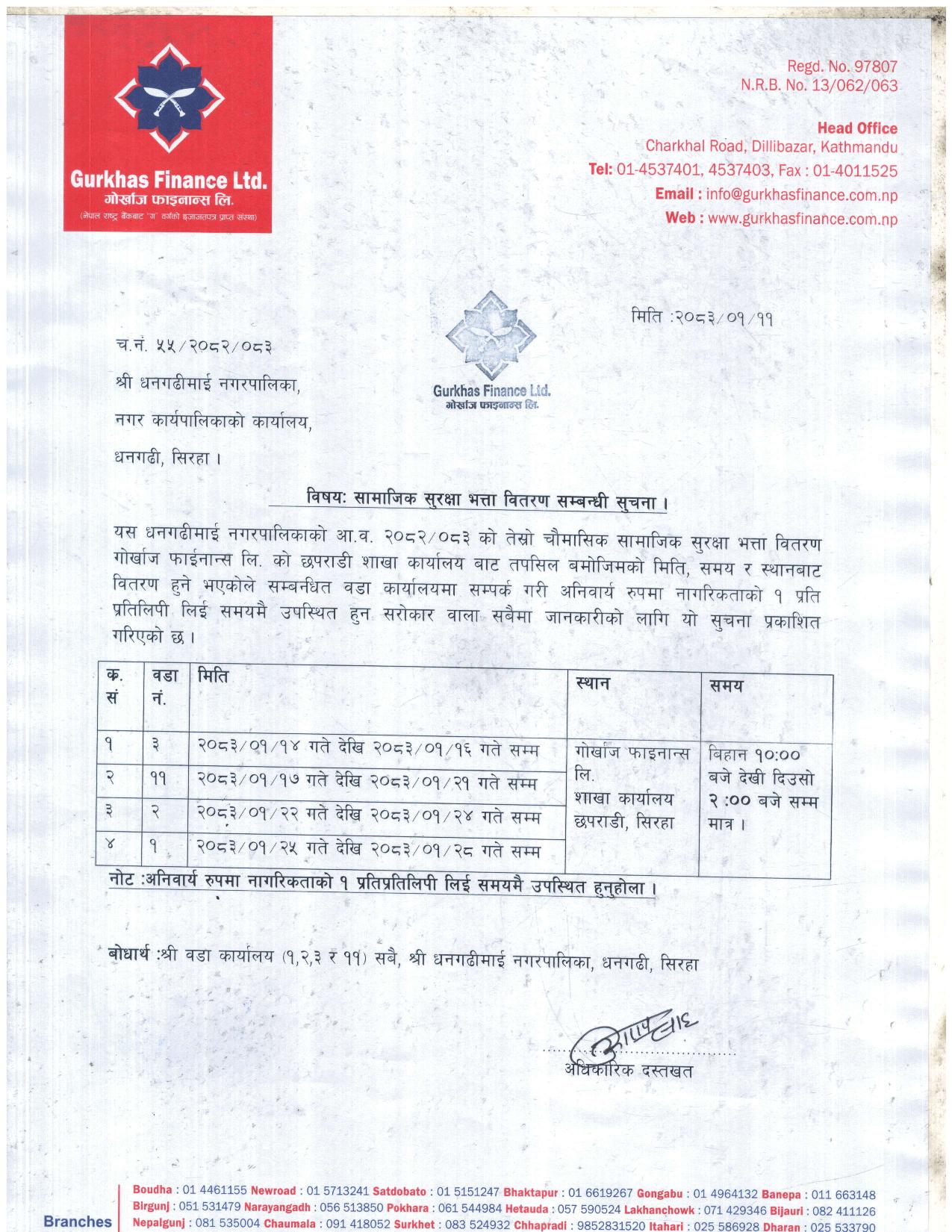 वडा नं. १, २, ३ र ११ धनगढीमाई नगरपालिका धनगढी, सिरहा ।