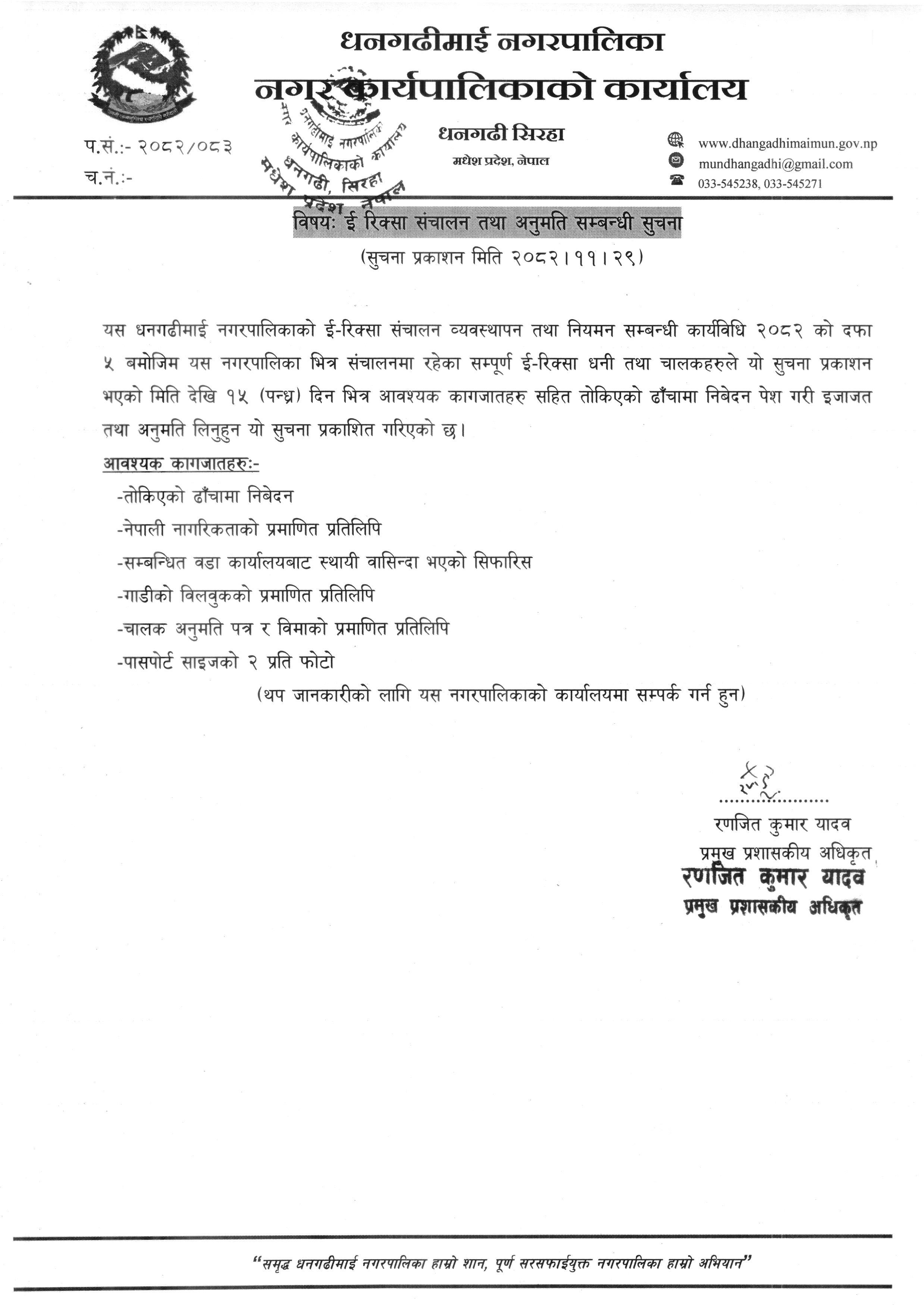 ई-रिक्सा संचालन तथा अनुमति सम्बन्धी सूचना ।