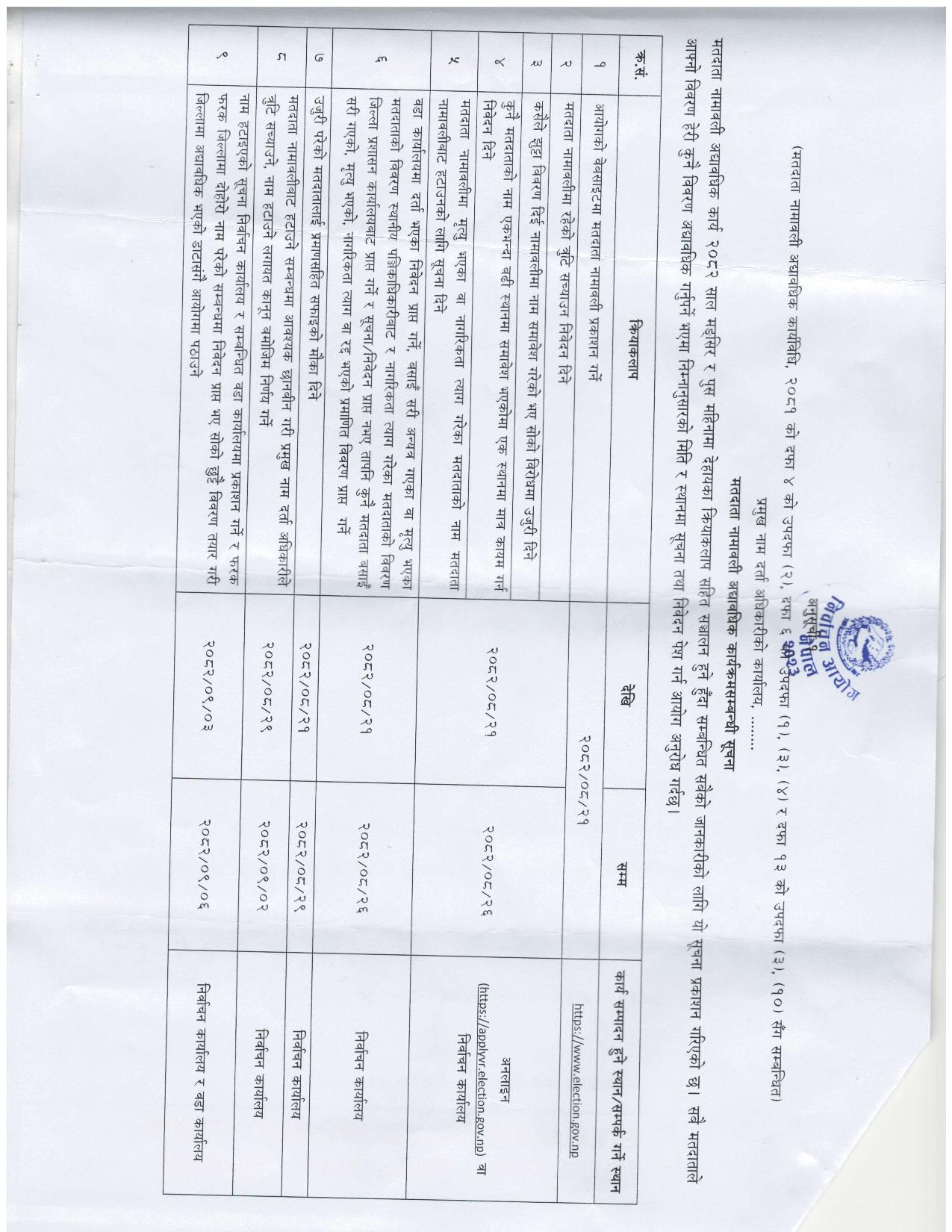 मतदाता नामावली अद्यावधिक कार्यक्रम सम्बन्धी सूचना ।