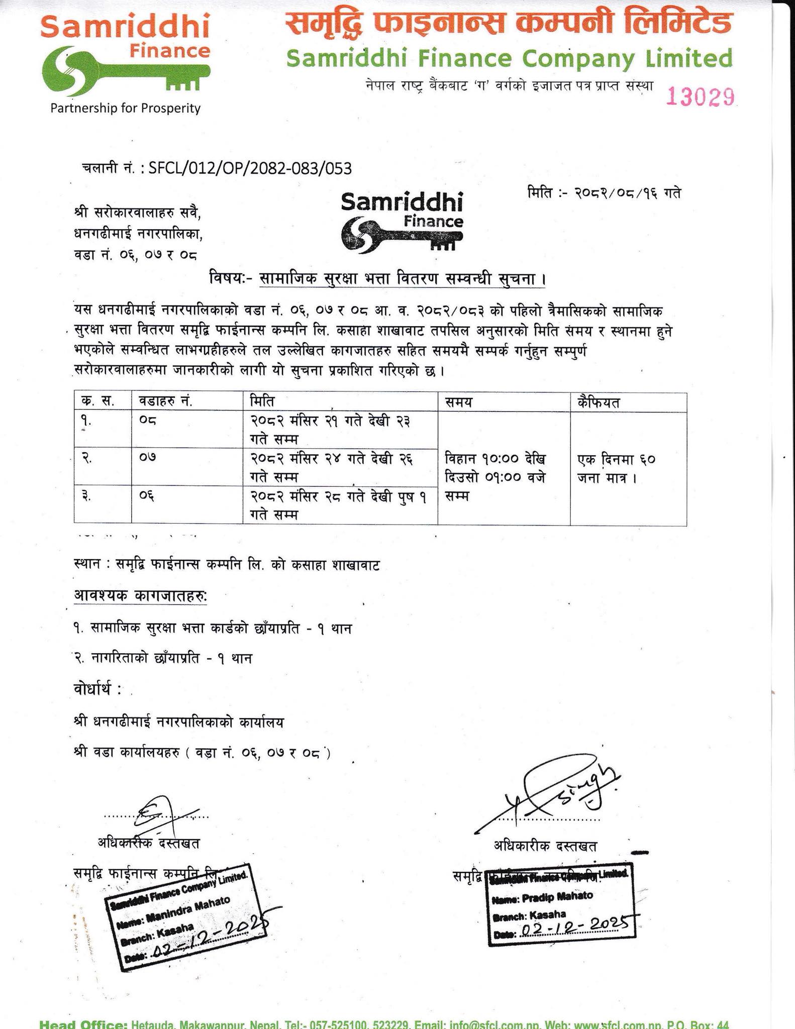 सामाजिक सुरक्षा भत्ता वितरण सम्वन्धी सूचना ।