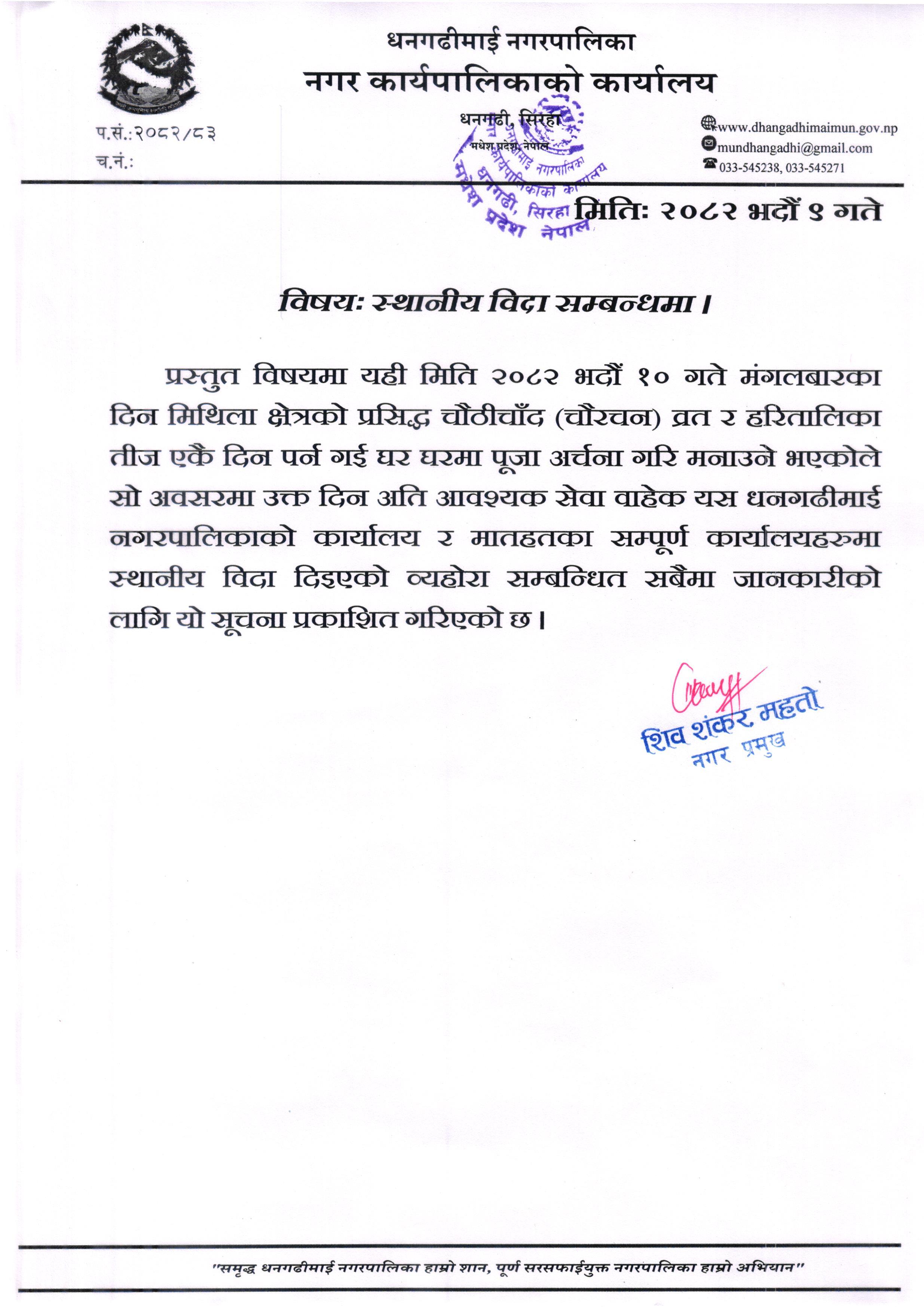 धनगढीमाई नगरपालिकाको आ. व. २०७५/७६ को बार्षिक बिकास योजनाहरुको विवरण