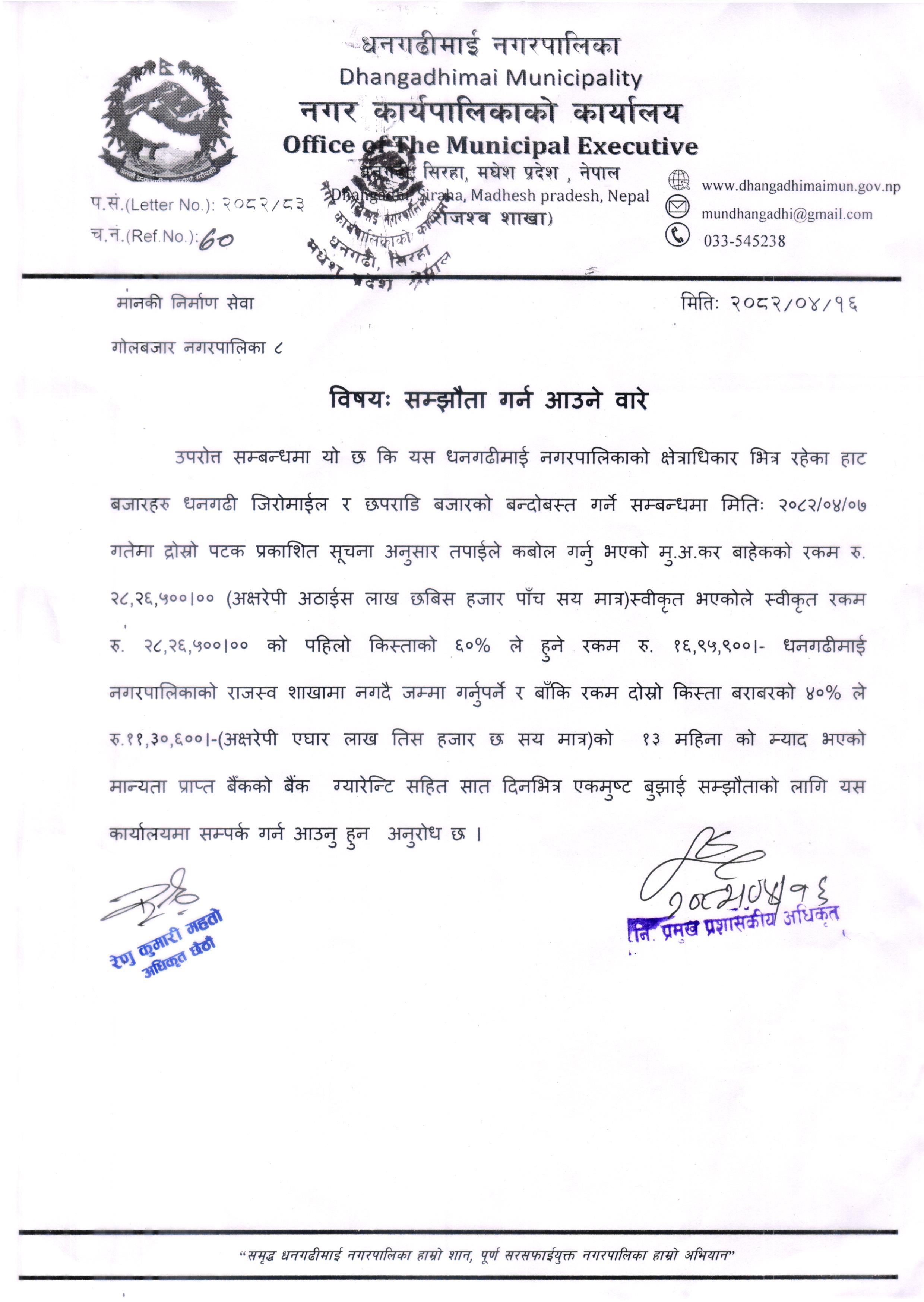 धनगढीमाई नगरपालिकाको आ. व. २०७५/७६ को बार्षिक बिकास योजनाहरुको विवरण